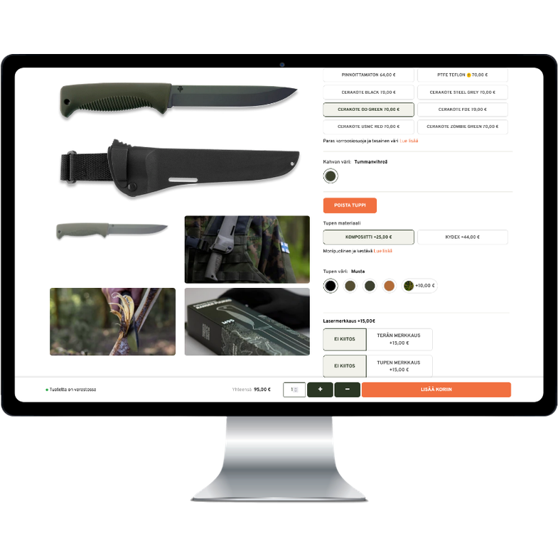 - Monipuoliset toimitusvaihtoehdot, kuten Posti, nouto ja kotiinkuljetus